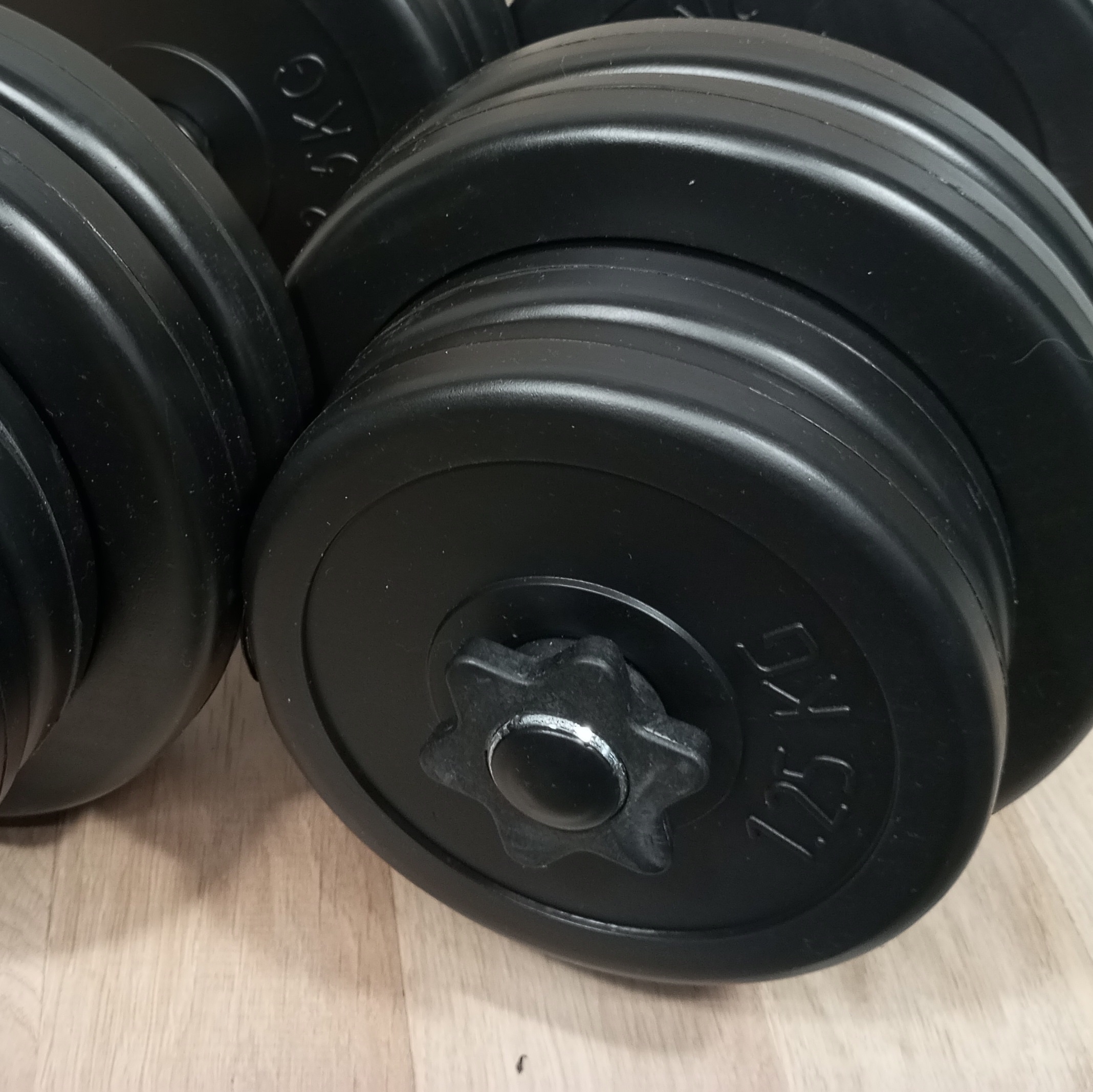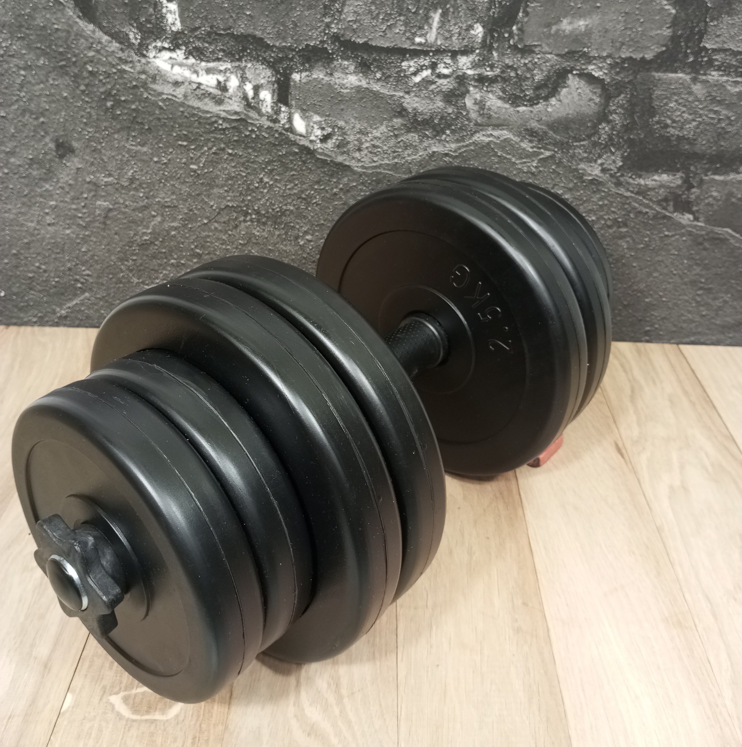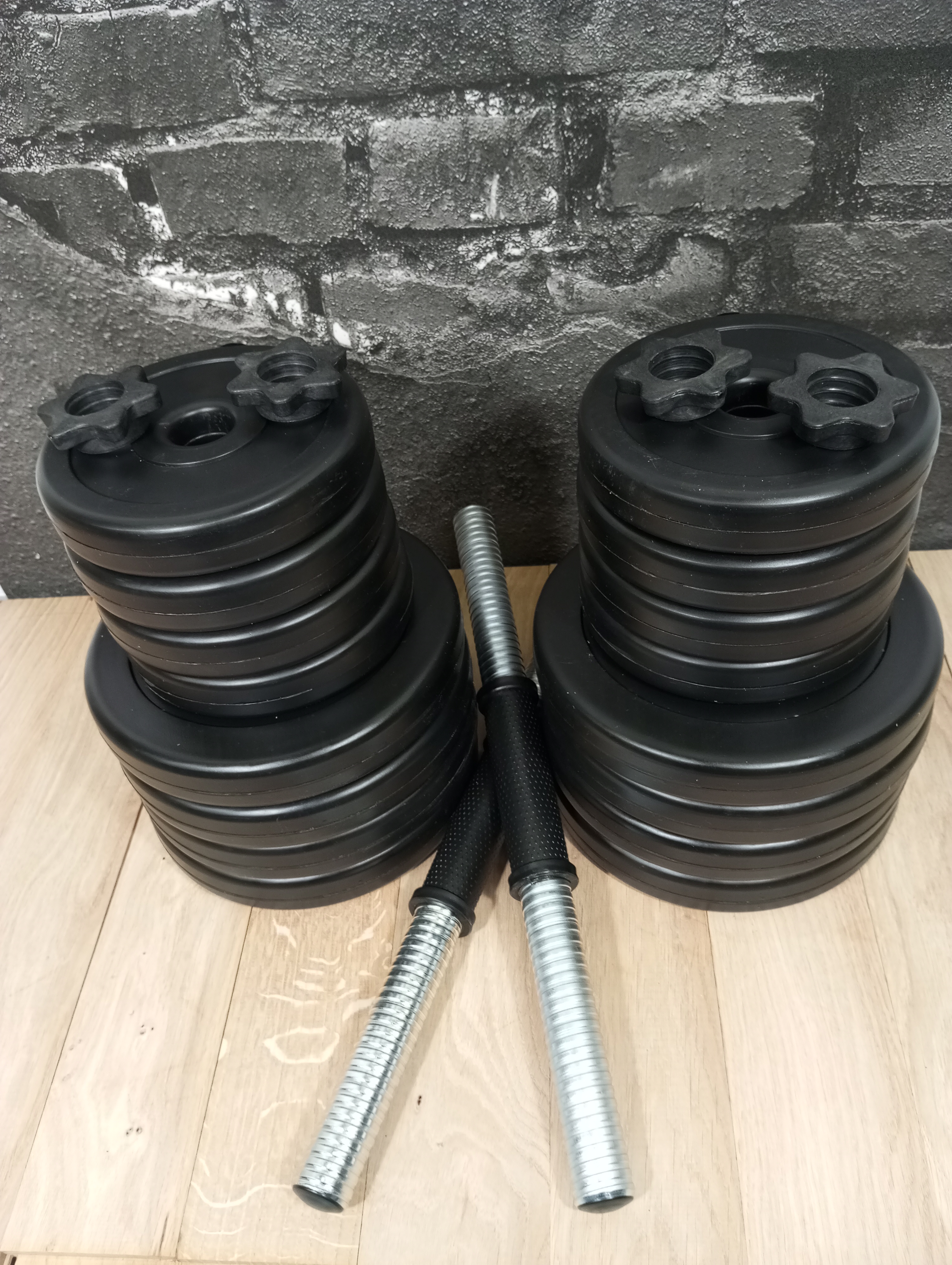 Набір з двох гантелей по 16 кг - оптимальний вибір для початківців. Функція розбірності дозволяє регулювати вагу в широкх межах, а продумана вага дисків дозволяє використовувати дані гантелі для тренування практично всіх гуп м'язів.