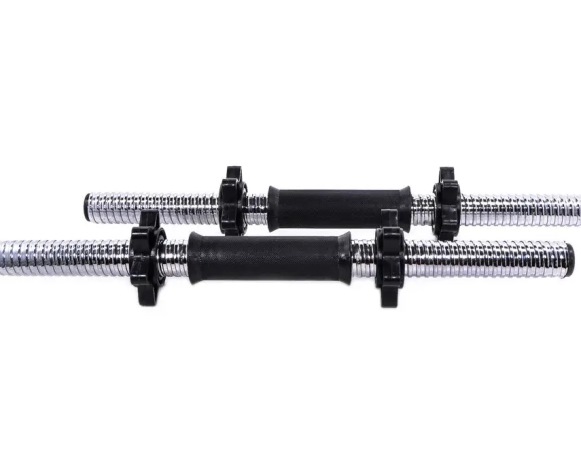 Кожна гантеля складається з металевого грифа, дисків різної маси та гайок-фіксаторів