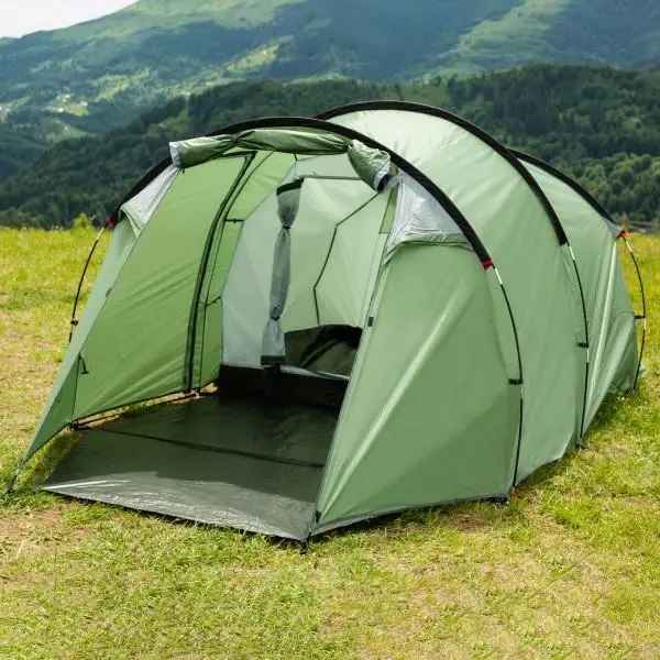 Тунельний намет — чудове рішення для туристичних походів, кемпінгу, полювання та риболовлі. Він здатен вмістити 6-8 осіб і має швидкий принцип складання.